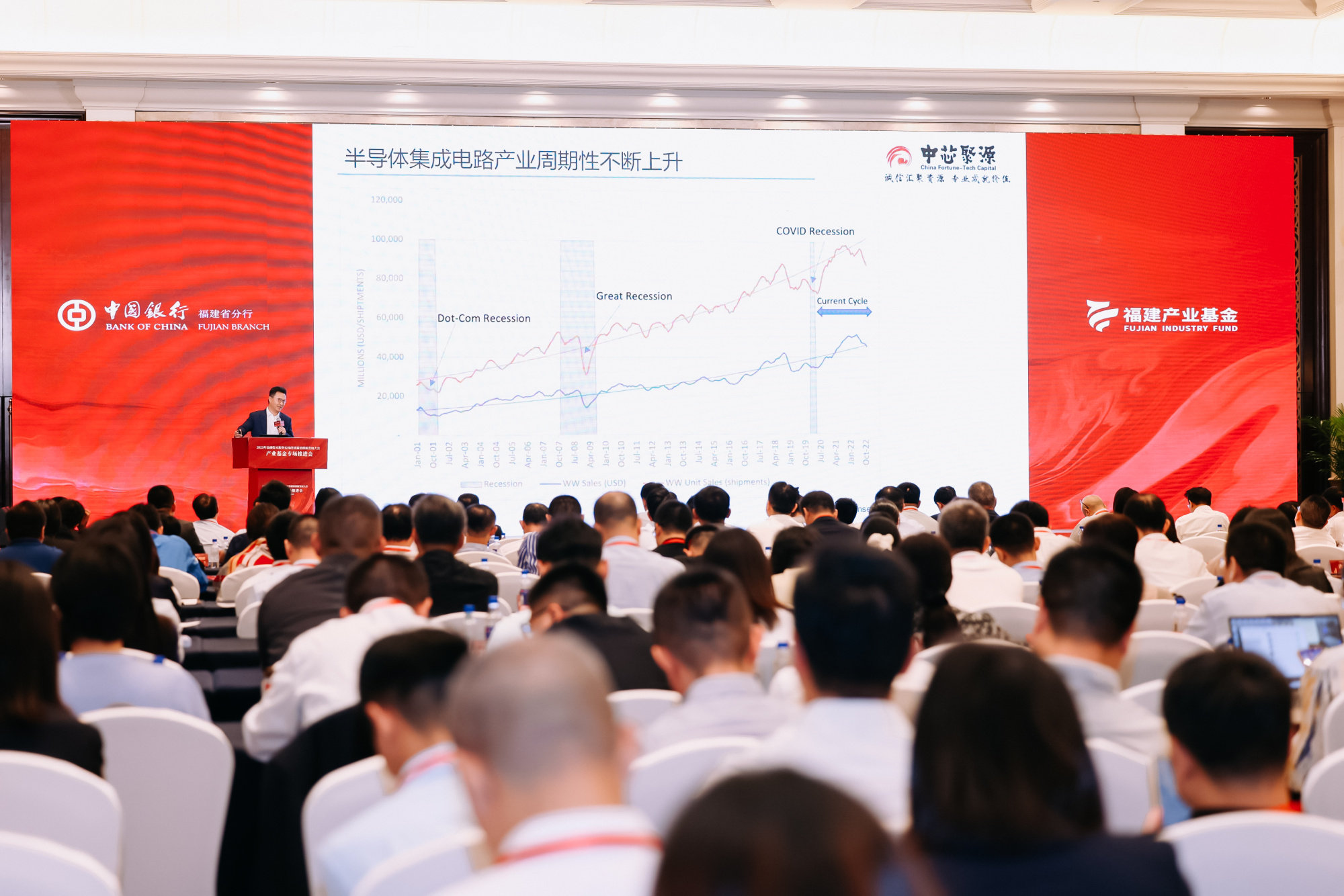 现场,中金资本董事长单俊葆聚焦“资本助力产业 创新引领发展”,清华大学金融科技研究院副院长、北京证券交易所专家顾问薛正华聚焦“产业投资赋能科技创新与企业发展”,中芯聚源基金管理合伙人张焕麟聚焦“半导体集成电路产业投资的实践与观察”,福建省产业投资基金公司总经理陈谨聚焦“新兴发展中的福建产业投资”,中国银行福建省分行党委委员、副行长刘超聚焦“产业基金助力福建经济高质量发展”分别作主题演讲。