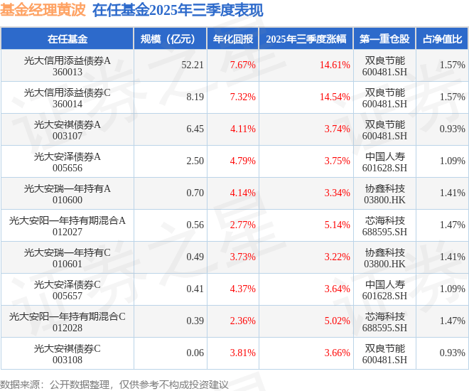 黄波2025年三季度表现光大信用添益债券A基金季度涨幅球速体育- 球速体育官方网站- APP下载1461%