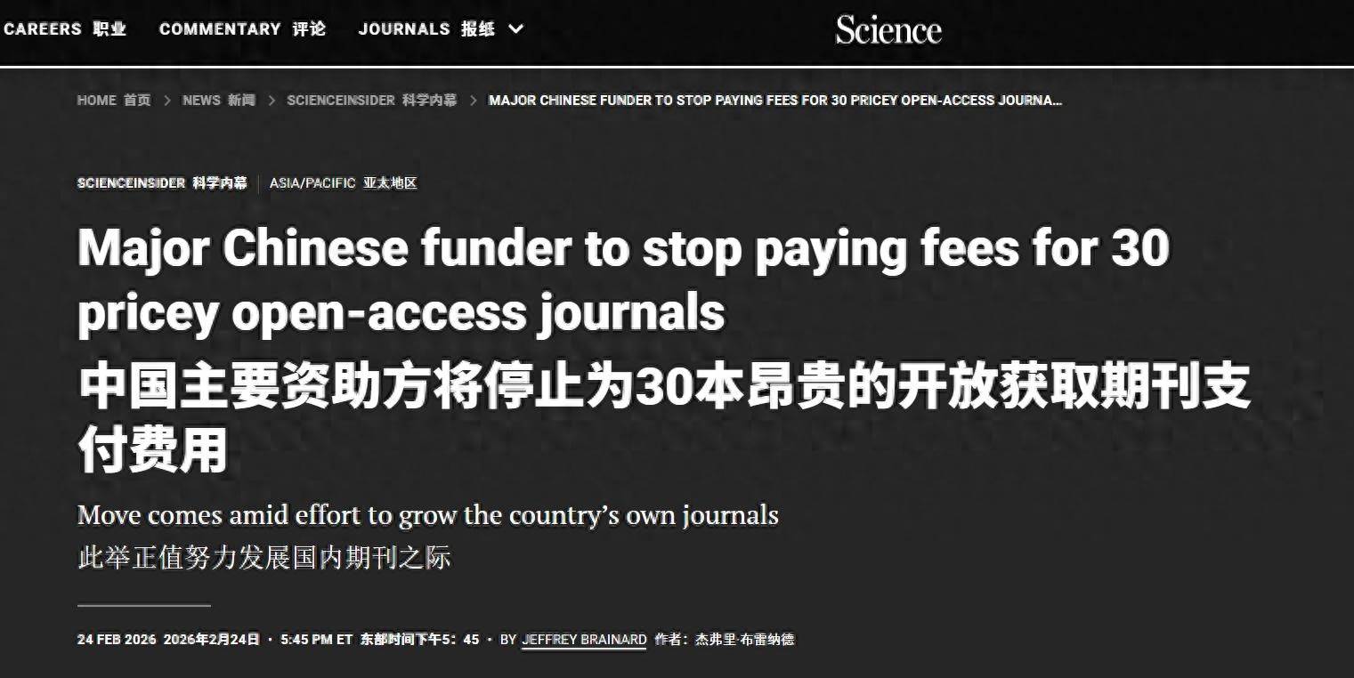 2026-03-03球速体育,球速体育官方网站,球速体育APP下载3月1日,中科院正式下达“拒绝支付令”,停付30多种国际高价期刊发表费,其中《自然-通讯》单篇高达7350美元。