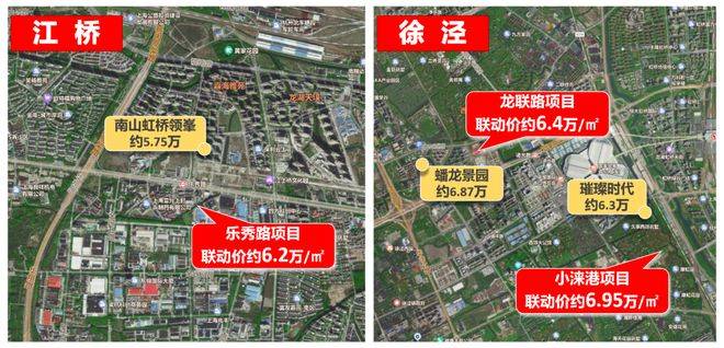 徐泾小涞港项目,房地联动价约6.95万/㎡,该地块同板块同类型产品为约6.87万/㎡的蟠龙景园,与其相较上调约800元/㎡。